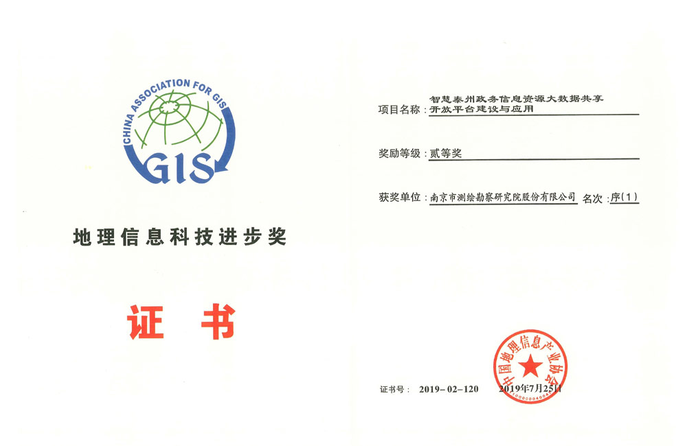 中國(guó)地理信息科技進(jìn)步二等獎(jiǎng)——智慧泰州政務(wù)信息資源大數(shù)據(jù)共享開放平臺(tái)建設(shè)與應(yīng)用